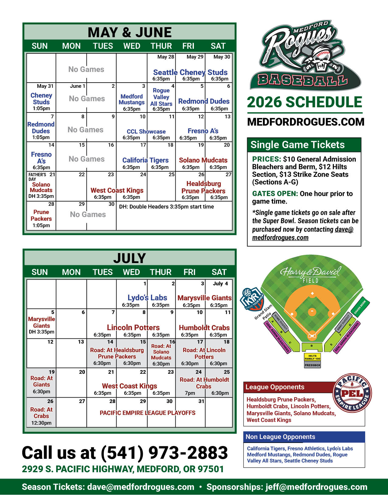 All games begin at 6:35 p.m. and the gates will open one hour prior.